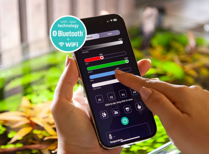 L’éclairage RGBW combiné au contrôleur intelligent ORI offre un contrôle total de votre aquarium. Grâce à l’application ORI, vous pouvez facilement ajuster les couleurs de l’éclairage et définir des plannings hebdomadaires personnalisés. Avec la connectivité Wi-Fi et Bluetooth, la gestion de l’éclairage de votre aquarium, des cartouches filtrantes et de la température de l’eau n’a jamais été aussi simple, vous permettant de créer des environnements parfaits, le tout depuis votre smartphone.