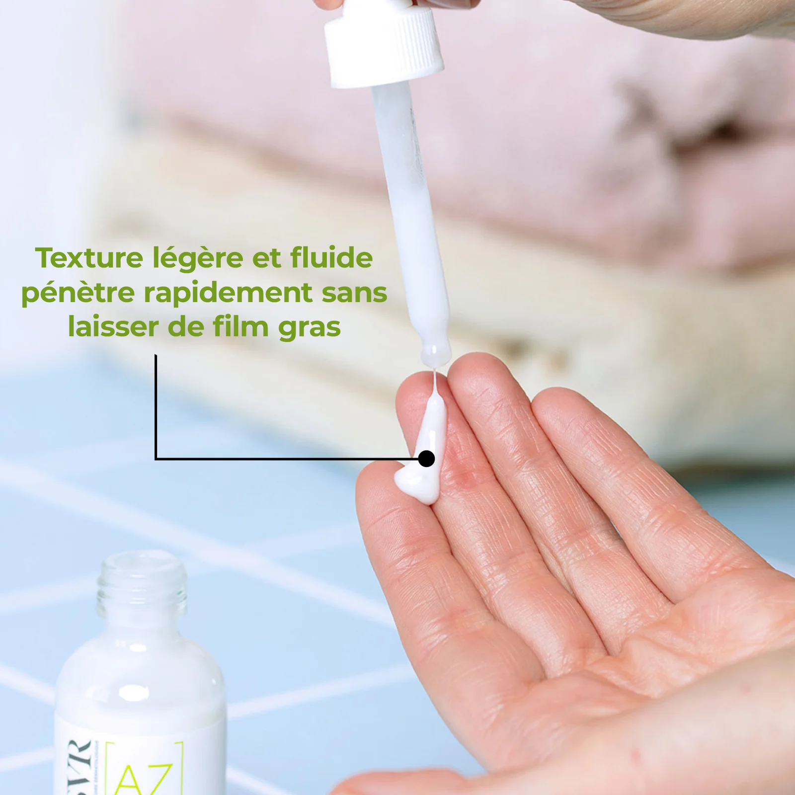 Appliquer SVR Sebiaclear Ampoule AZ Flash matin et/ou soir sur le visage nettoyé, en évitant le contour des yeux.