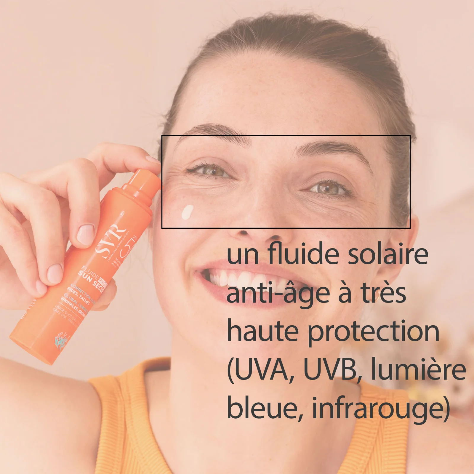 SVR Sun Secure Fluide Photo-Age SPF50+ est un fluide solaire anti-âge à très haute protection (UVA, UVB, lumière bleue, infrarouge).